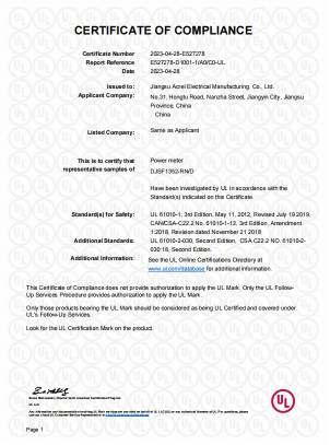 UL證書可以保障產品的安全性和可靠性,為消費者提供更好的保護。也是對我司現(xiàn)有的工廠質量管理體系和產品質量的一種肯定,只有遵循國際化的品質要求才能做出讓客戶滿意的產品,只有做讓客戶信得過的企業(yè),才能持續(xù)為廣大客戶服務!