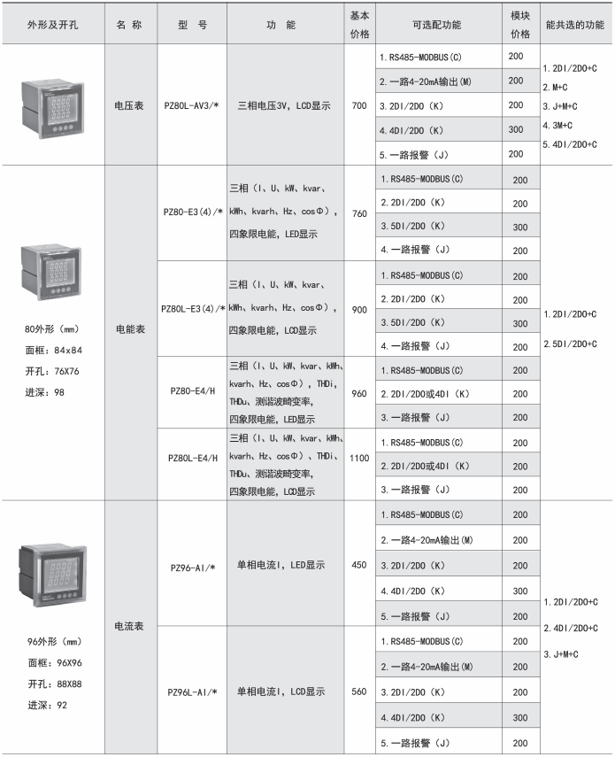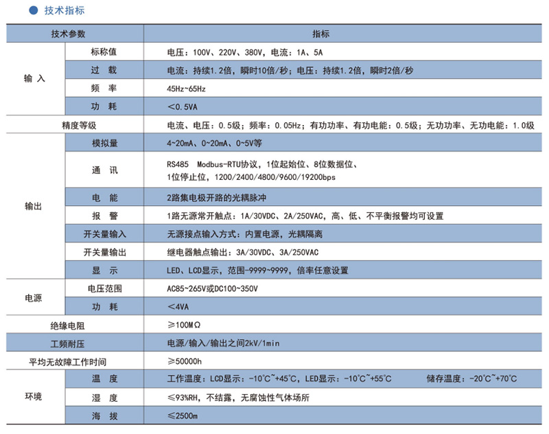 該系列儀表采用交流采樣技術,能分別測量電網中的電流、電壓、功率、功率因數和電能等參數。可帶RS485通訊接口、模擬量數據轉換、開關量輸入/輸出等功能,實現電力參數、電氣元件工作狀態的遠程傳輸,便于后臺監控系統集中檢測。