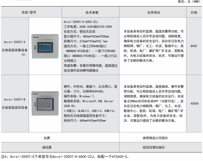 綜上所述,確定型號為:無線測溫集中觸摸屏:AARTM-7062HT-4(HI),1臺;無線測溫傳感器:ATE200,90個;無線測溫收發器:ATC200,10個