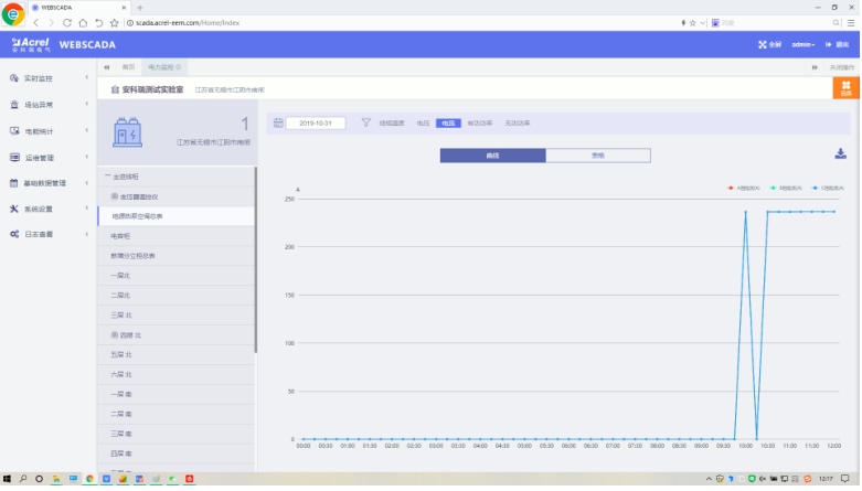 設(shè)備數(shù)據(jù)頁面顯示各設(shè)備的電參量數(shù)據(jù)以及曲線。