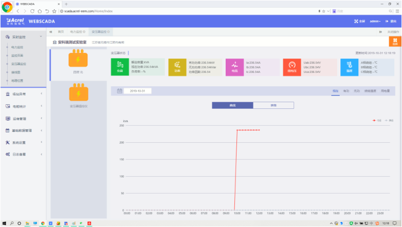 實時變壓器曲線可監(jiān)測變壓器的狀態(tài),某天的電壓、電流、功率、用電量等曲線信息。